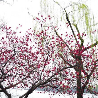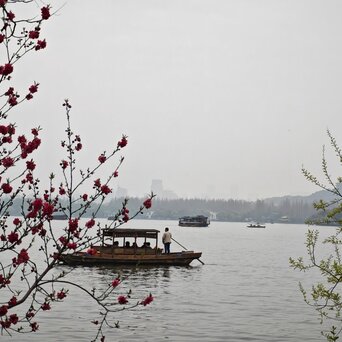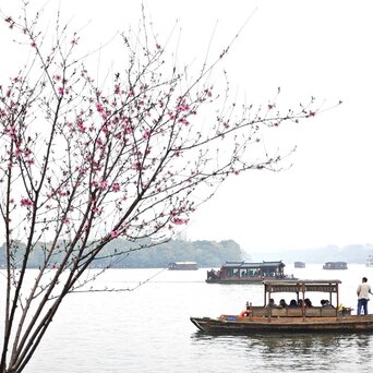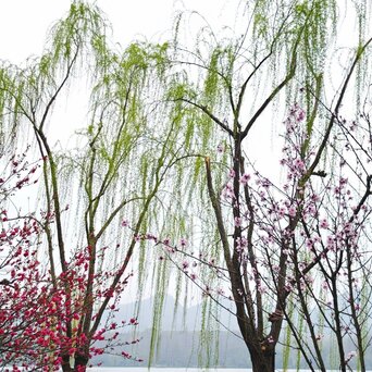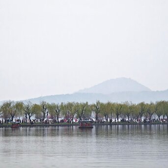 今天西湖阴天,拍出来的水白色一片。好在我也不是来看水的,我是来看桃红柳绿的,桃花开的还不是太盛,但依旧和柳树搭的风情万种。
